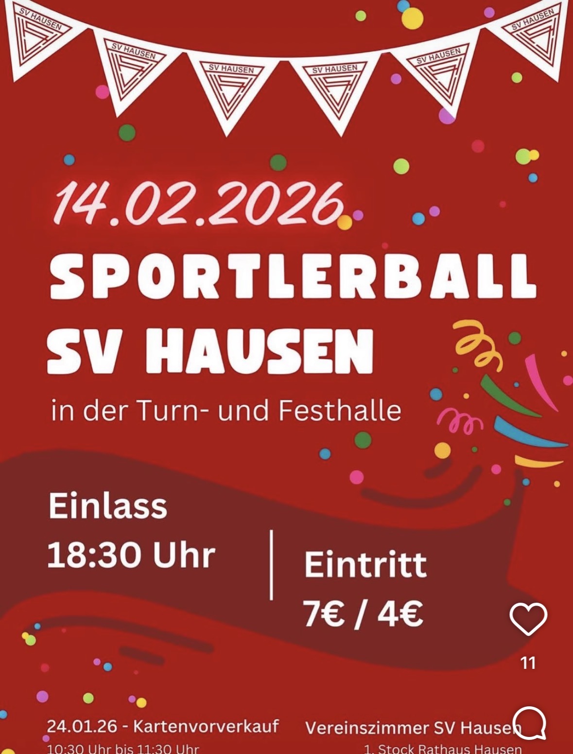 Am 24.01.2026 – Kartenvorverkauf im Vereinszimmer des SV Hausen im