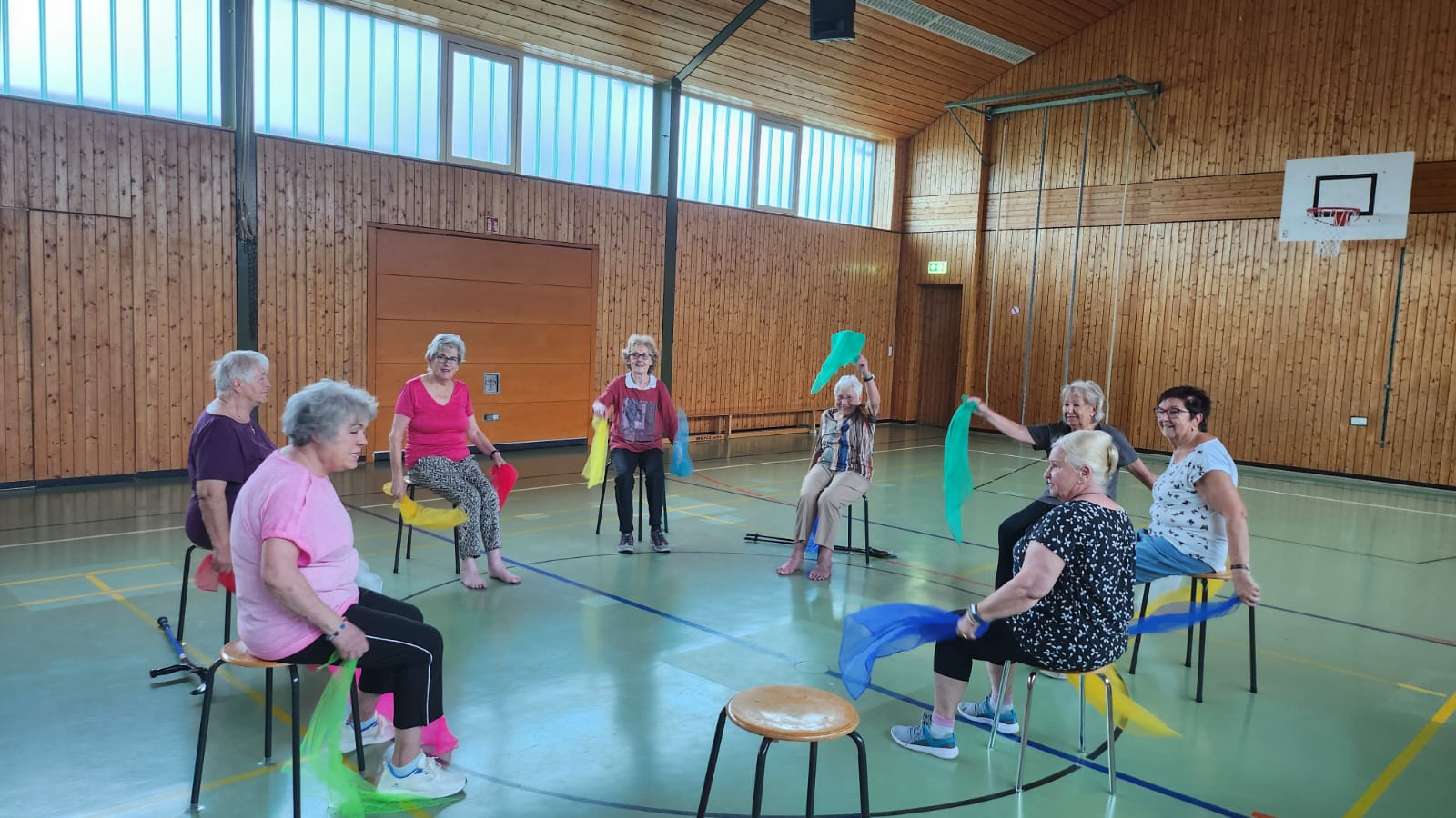 Bei der Frauenseniorengruppe, die am Montag stattfindet, sind zur Zeit 15 Teilnehmerinnen. Von Kopf bis Fuß wird alles mit und ohne Geräte mobilisiert, gekräftigt und gedehnt. Auch auf Stundenwünsche wird eingegangen und in die Gymnastikstunden aufgenommen.